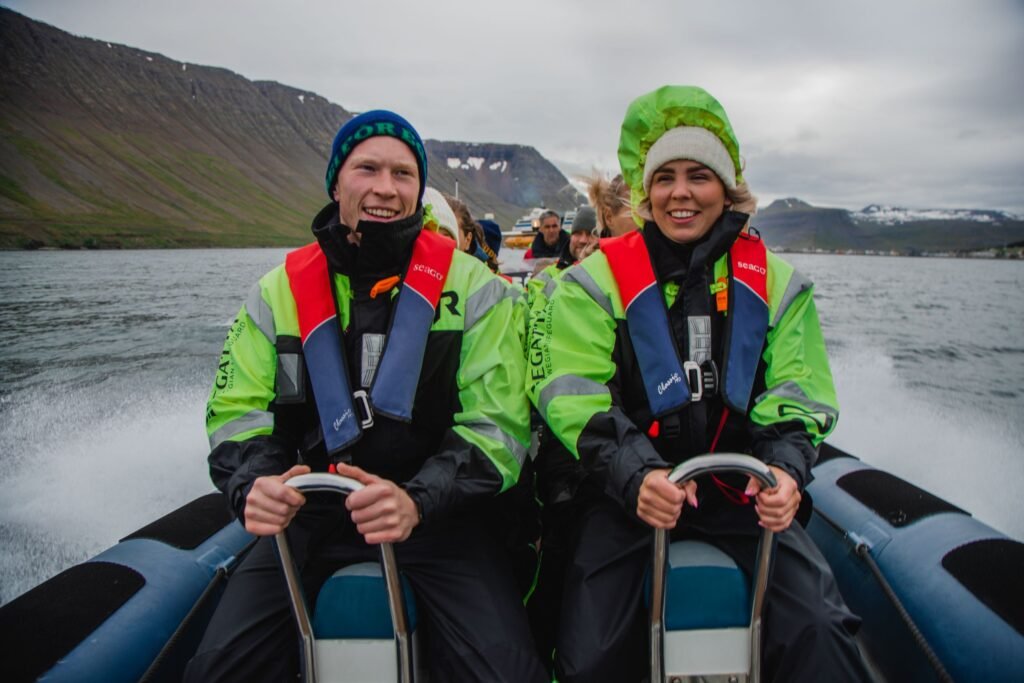 For those seeking a thrilling adventure on the water, RIB safaris around Heimaey deliver excitement from the very first wave. Guests travel by high-speed boat along the island’s dramatic coastline, weaving through sea caves and beneath towering bird cliffs. The route includes close encounters with iconic landmarks like Elephant Rock and basalt columns, with seasonal chances to spot puffins, seabirds, and even whales.